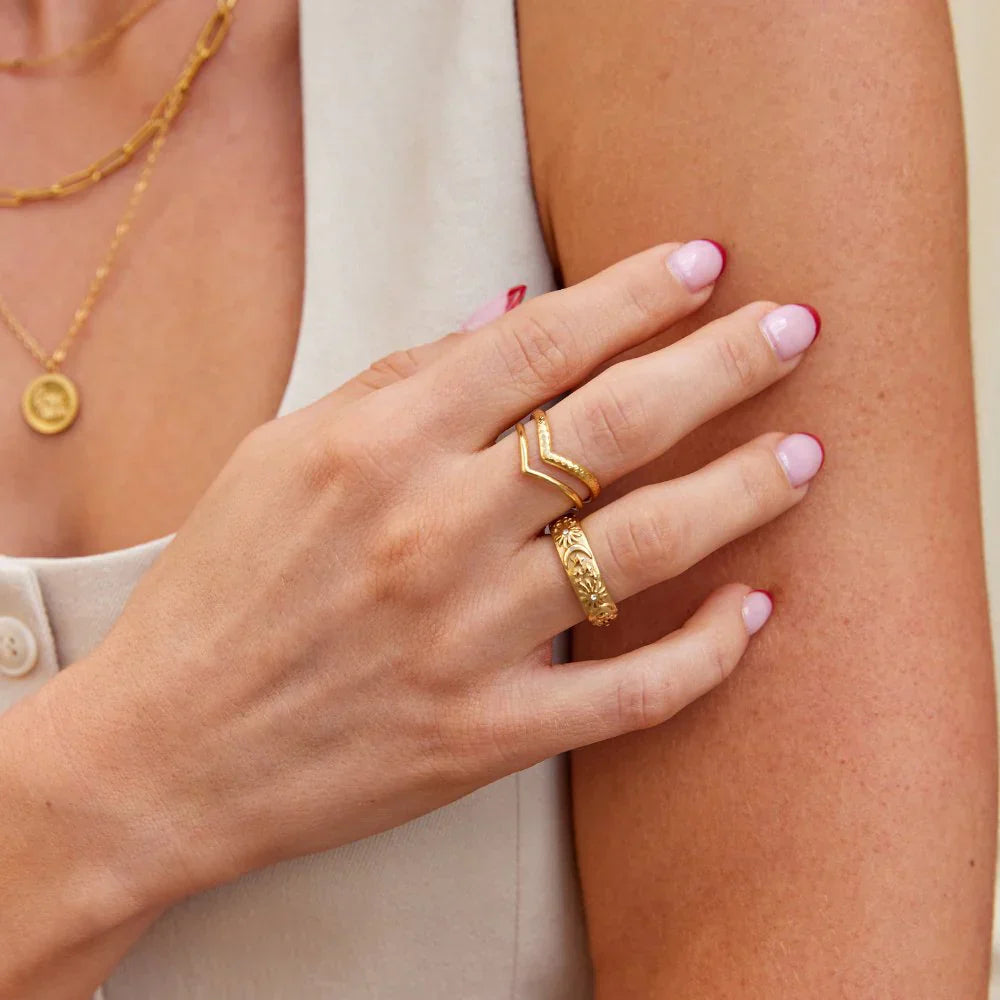 Este lindo Anel é pensado para mulheres elegantes e sofisticadas. Com um design exclusivo Namoour, cada detalhe é cuidadosamente elaborado para realçar a beleza e complementar o estilo único de cada mulher. Feito de aço inoxidável folheado a ouro, oferecendo excelente qualidade para você. Adquira agora e destaque sua beleza!