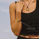 O Bracelete Sol é aquela peça de presença que ilumina o visual sozinha, elegante, moderno e marcante, transita do dia ensolarado à noite de verão sem perder o encanto. Minimalista no desenho, máximo no efeito.